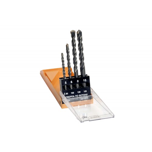 Набор сверл для бетона Ф5;6;8;10 мм, 4 штуки, пластиковый футляр