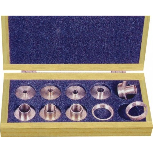 Копировальные втулки позволяют обрабатывать криволинейные кромки параллельно образцу. Также с помощью данного набора можно выполнять соединения «ласточкин хвост», ступенчатую обработку, выточку букв и цифр. В комплект входят 2 стопорные гайки, 8 копировальных втулок. Копировальная втулка вставляется в отверстие станины фрезера и фиксируется контргайкой.