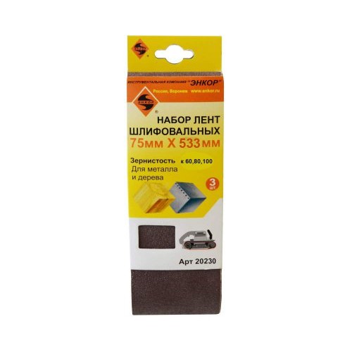 Набор шлифлент 75Х533 мм, К60, К80, К100, 3 штуки