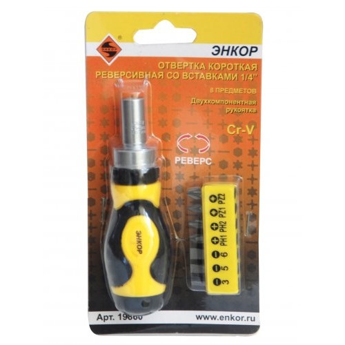 Отвертка короткая реверсивная со вставками 1/4", 8 предетов