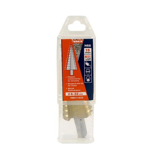 Сверло для металла ступенчатое 4-32мм 15 ступ шаг 2 ход 5