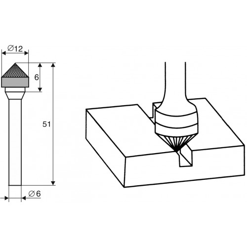 Борфреза Коническая 90 градусов "K" 6х12