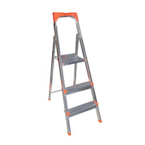 Бытовая стремянка металлическая оцинкованная с пластмассовой верхней полкой для инструментов. Стремянка рассчитана на нагрузку до 150 кг, удобна в быту и строительстве.