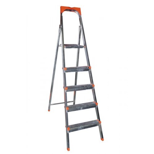 Бытовая стремянка металлическая оцинкованная с пластмассовой верхней полкой для инструментов. Стремянка рассчитана на нагрузку до 150 кг, удобна в быту и строительстве.