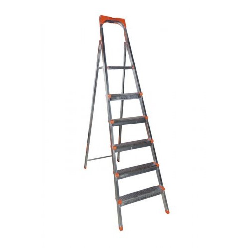 Бытовая стремянка металлическая оцинкованная с пластмассовой верхней полкой для инструментов. Стремянка рассчитана на нагрузку до 150 кг, удобна в быту и строительстве.