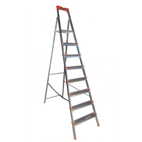 Бытовая стремянка металлическая оцинкованная с пластмассовой верхней полкой для инструментов. Стремянка рассчитана на нагрузку до 150 кг, удобна в быту и строительстве.