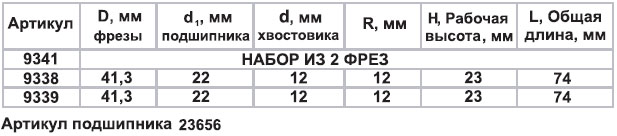 Данные фрезы сконструированы как наборы из двух фрез, которые по своему применению аналогичны комбинированным фрезам арт. 9333, 9334, 9335, 9346. Если для изготовления обратного профиля при использовании этих фрез требуется переустановить режущие кромки, то при использовании наборов фрез арт. 3940, 3941, 10590 достаточно переустановить фрезу.