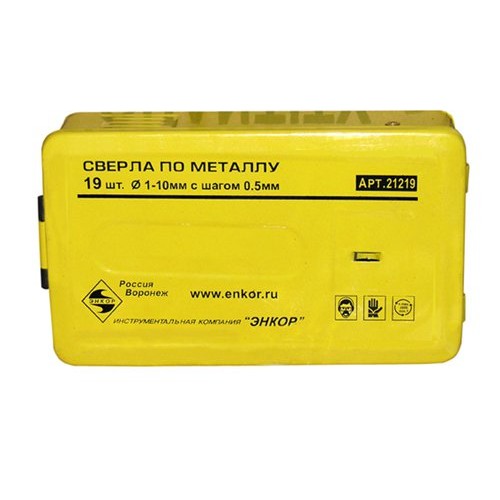 Набор сверл для металла HSS 1-10 мм, шаг 0,5 мм, 19 штук, металлический футляр