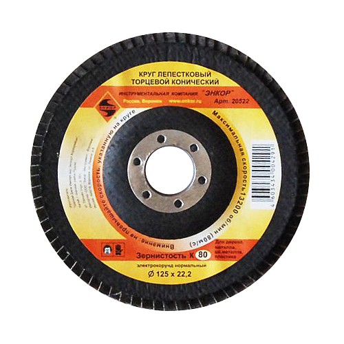 Круг лепестковый Ф125Х22,2 мм, К80, торцевой конический