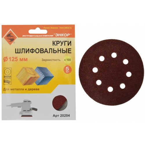 Шлифкруги Ф125 мм, К100, на липучей основе с отверстиями, 5 штук, для дерева и металла