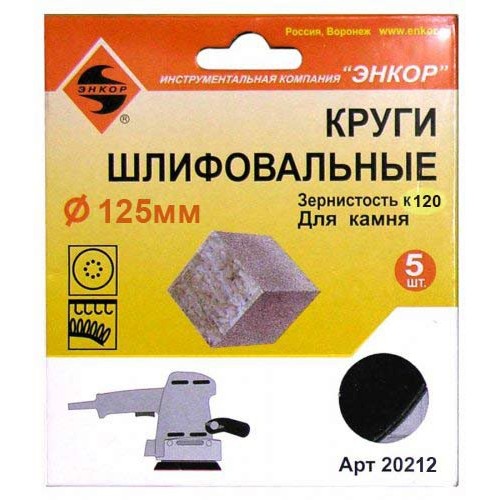 Шлифкруги Ф125 мм, К120, на липучей основе с отверстиями, 5 штук, для камня
