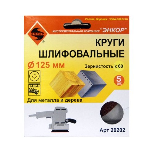 Шлифкруги Ф125 мм, К60, на липучей основе с отверстиями, 5 штук, для дерева и металла