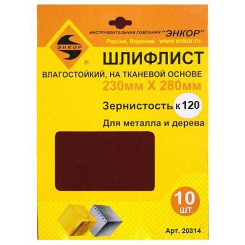 Шлифлисты 230Х280 мм, К120, на тканевой основе, 10 штук, водостойкий
