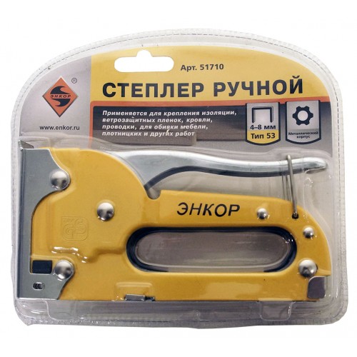 Степлер предназначен для работы со скобами: тип скобы 53, размер 4-8 мм.