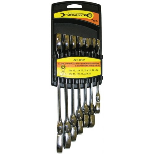 Набор ключей комбинированных с шарниром и трещоткой, 7 штук