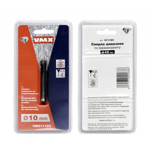 Сверло алмазное по керамограниту ф 10 мм мокр. рез