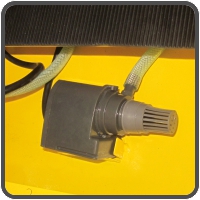 Обрезиненный рабочий стол.   Режущий узел перемещается по подшипникам.   Насос для подачи воды в зону реза.