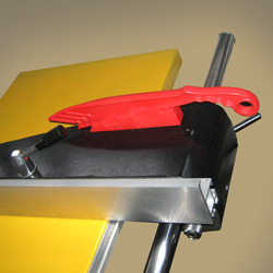 Параллельный упор перемещается по жесткой цилиндрической направляющей с возможностью точной регулировки.   Дополнительная линейка для угловых резов на каретке позволяет производить угловые резы без перенастройки основного фронтального упора   Удобная регулировка наклона и вылета дисков.