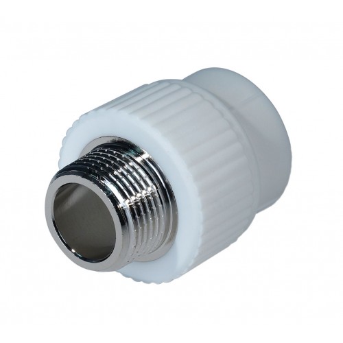 Муфта комбинированная PPRC диаметр 20 ммх 1/2" наруж.резьба белая