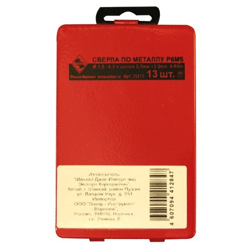 Набор сверл для металла Р6М5 Ф1,5-6,5 мм, 13 штук, металлический футляр