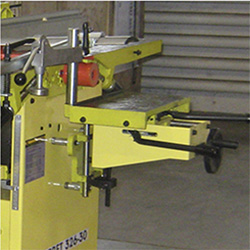 | Направляющая планка при строгании устанавливается под 90 и 45 град | На строгальный вал устанавливается 3 ножа | Пазовальный узел перемещается по трем осям с регулировкой длины хода | ||