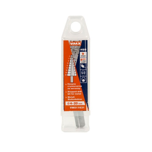 Сверло для металла ступенчатое 4-20 мм 9 ступ шаг 2 ход 5